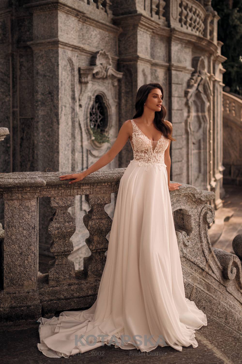 Chrystal est la robe idéal pour la mariée qui souhaite se distinguer. Cette robe délicate, avec sa jupe en chiffon, est sublimée par une jupe en tulle amovible, créant une silhouette aérienne et élégante. La dentelle douce, ornée de perles délicates, apporte une touche romantique irrésistible. De plus, il est possible de commander cette robe dans une coupe princesse, offrant ainsi une option intemporelle et raffinée pour celle qui rêve d’une robe unique et polyvalente.
